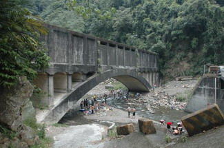 位在南投縣水里鄉的過水橋建於日據時期,顧名思義為一座供「水」通行的橋樑,大觀發電廠發電後的尾水經由過水橋引至台電鉅工發電廠二次利用,若水量過剩機組無法消耗時便會自過水橋兩旁的十個水孔溢出,滿水時磅礡的水流氣勢驚人,加上周圍是水源保護區,自然生態未遭受破壞,形成獨特的景致,耳邊的蟲鳴鳥叫,偶爾還可見到獼猴的蹤跡,有如世外桃源般幽靜。