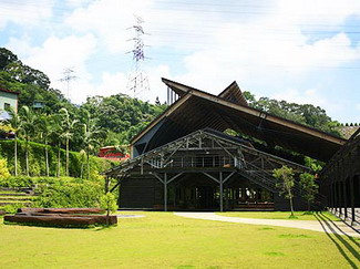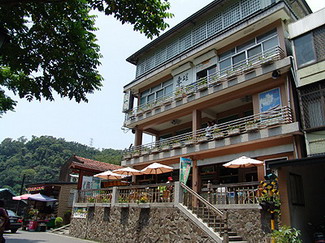 深咖啡的建築稱作"天車" 也就是俗稱的起重機可以將池中的原木搬運到運材車上在送到加工廠中加工 天車也是完全用木造的可是車埕的地標之ㄧ。