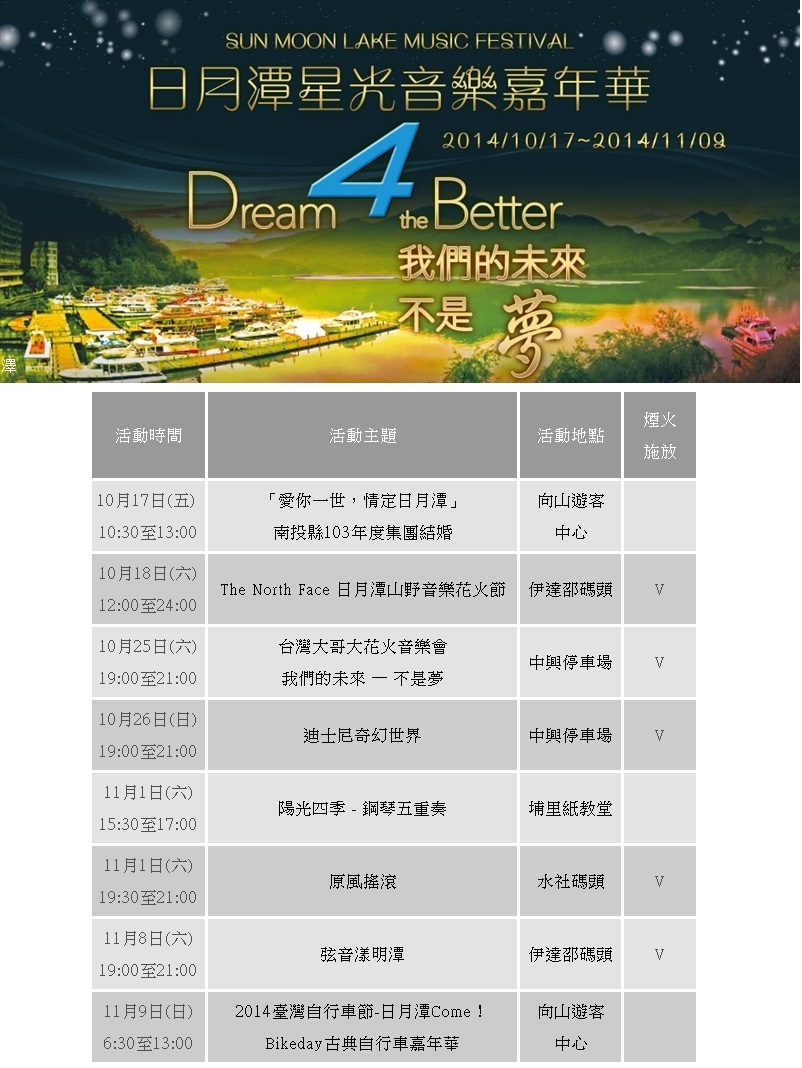 2014日月潭國際花火音樂暨自行車嘉年華 - 系列活動總覽